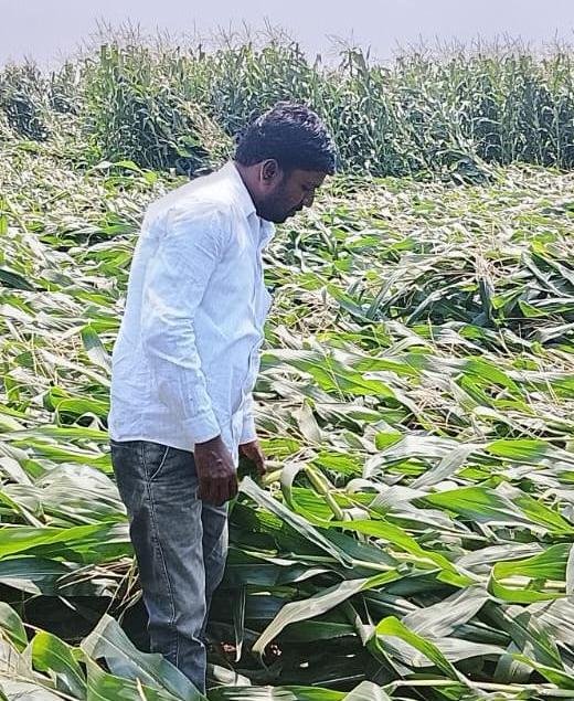 సిద్దిపేట జిల్లా బెజ్జంకి మండలంలోని ఎల్లంపల్లె గ్రామానికి చెందిన రైతు రాజేందర్ సాగుచేసిన మొక్కజొన్న పంట అకాల వర్షాలకు దెబ్బతింది.ఆయన 5 ఎకరాల్లో పంట సాగు చేయగా, సోమవారం రాత్రి కురిసిన అకాల వర్షం కారణంగా సుమారు 2 ఎకరాల్లో పంట పూర్తిగా నష్టపోయింది.ఇంకా 20 రోజుల్లో కోతకు సిద్ధంగా ఉన్న పంట ఈ వర్షంతో నేలకూలిపోవడంతో రైతు తీవ్ర ఆవేదన వ్యక్తం చేశారు. ఈ యొక్క అకాల వర్షంతో దాదాపు రూ. 2 లక్షల వరకు నష్టం వాటిల్లినట్లు తెలిపారు.అకాల వర్షాల కారణంగా రైతులు తీవ్ర ఇబ్బందులు పడుతున్నారని, ప్రభుత్వం వెంటనే స్పందించి నష్టపరిహారం అందించాలని రైతు రాజేందర్ కోరారు.