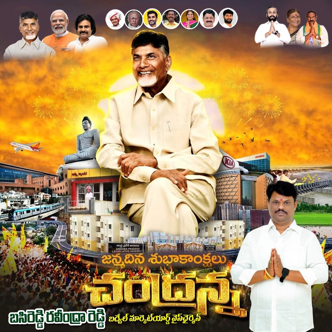 ఆంధ్రప్రదేశ్ గౌరవ ముఖ్యమంత్రివర్యులు శ్రీ నారా చంద్రబాబు నాయుడు గారికి జన్మదిన శుభాకాంక్షలు.బసిరెడ్డి రవీంద్రారెడ్డి