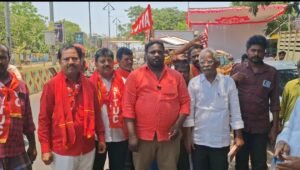 తిరుపతి జిల్లా ప్రజావాణి న్యూస్ (ఏప్రిల్25) సూళ్లూరుపేట పట్టణంలో జరుగుతున్న ఏఐటియుసి 18 వ రాష్ట్ర మహాసభలను జయప్రదం చేయాలని కోరుతూ గత 17వ రాష్ట్ర మహాసభ జరిగిన గుంటూరు నుండి బయలుదేరిన జీపు జాతకు సూళ్లూరుపేట పట్టణంలో ఘనస్వాగతం పలికారు. ఈ జీపు జాతను ఉద్దేశించి రాష్ట్ర నాయకులు అంజిబాబు, సిపిఐ సీనియర్ నాయకులు పార్థసారథి మాట్లాడుతూ ఈ దేశంలో స్వతంత్ర ఉద్యమంలో కార్మికులను ఏకతాటి మీదకు తెచ్చిన ఏఐటియుసి 106 సంవత్సరాలుగా కార్మిక సంక్షేమం కోసం పోరాటం చేస్తున్నదని కార్మికుల హక్కుల రక్షణ ధ్యేయంగా అనేక అనేక వీరోచిత పోరాటాలకు నాయకత్వం వహించి కార్మిక చట్టాల రూపకల్పనలో భాగస్వామ్యం కావడం ద్వారా అనేక కార్మిక సంక్షేమ చట్టాలను ఏర్పాటు చేసుకోవడం జరిగిందని, నేడు దేశవ్యాప్తంగా కేంద్ర రాష్ట్ర ప్రభుత్వాలు అనుసరిస్తున్న కార్మిక కర్షక వ్యతిరేక విధానాలు దేశ శ్రామిక రంగాన్ని ఉద్యమ బాటలో నడిపిస్తున్నాయని అన్నారు. కేంద్ర రాష్ట్ర ప్రభుత్వాలు అనుసరిస్తున్న కార్మిక వ్యతిరేక విధానాలను ప్రజలందరూ ఏకతాటిపై ఖండిస్తున్న నేపథ్యంలో ఏఐటీయూసీ రాష్ట్ర మహాసభలు తిరుపతి పట్టణంలో జరుగునున్నయని ఈ మహాసభల జయప్రదం కోరుతూ కార్మికలోకం తరలిరావాలని కోరారు. గుంటూరు నుండి బయలుదేరిన జాత సూళ్లూరుపేటకు చేరిందని సూళ్లూరుపేటలో కార్మికులు ఆహ్వానం పలకడం సంతోషాదాయకమని అన్నారు. ఈ కార్యక్రమంలో ఏఐటియుసి నియోజకవర్గ అధ్యక్ష కార్యదర్శులు శ్రీనివాసులు నాగేంద్రబాబు రమణయ్య బాలు లక్ష్మమ్మ బాలయ్య నాగరాజు బాబు పాళ్లెయ్య తదితరులు పాల్గొన్నారు