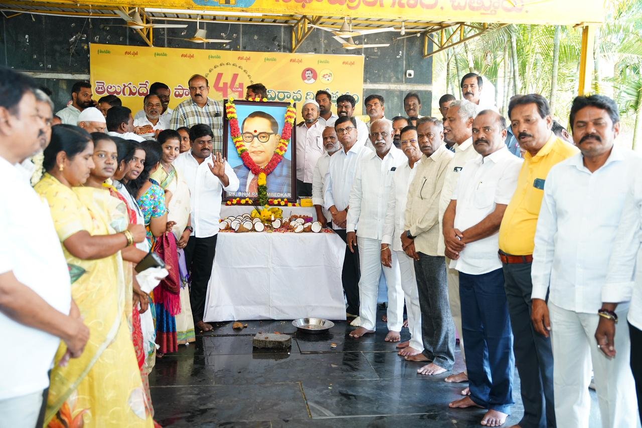 చిత్తూరు జిల్లా ప్రజావాణి న్యూస్ (ఏప్రిల్14) చిత్తూరు తెలుగుదేశం పార్టీ కార్యాలయంలో రాజ్యాంగ నిర్మాత డాక్టర్ బి.ఆర్ అంబేద్కర్ జయంతి వేడుకలను ఘనంగా నిర్వహించారు.దళితుల ఆశాజ్యోతి అంబేద్కర్ కు ఘన నివాళులర్పించిన చిత్తూరు ఎంపీ శ్రీ దగ్గుమళ్ళ ప్రసాదరావు ,టిడిపి చిత్తూరు జిల్లా అధ్యక్షులు శ్రీ షణ్ముగం రెడ్డి,మాజీ ఎమ్మెల్సీ శ్రీ దొరబాబు.,చూడ ఛైర్పర్సన్ శ్రీమతి కఠారి హేమలత ,మాజీ ఎమ్మెల్యే శ్రీ ఏ.యస్.మనోహర్,టిడిపి రాష్ట్ర కార్యదర్శి శ్రీ వెంకిటీల సురేంద్ర కుమార్ ,మాజీ ప్రధాన కార్యదర్శి శ్రీ కోదండ యాదవ్,మాజీ కార్పొరేటర్ శ్రీ అశోక్ గారు,తెలుగు తమ్ముళ్లు,టిడిపి యస్సీ సెల్ నాయకులు, కార్యకర్తలు.అక్షరాస్యతతోనే దేశ పురోభివృద్ధితో పాటు,ఆర్థిక అసమానతలను తొలగించవచ్చునని నినదించి మహోన్నత వ్యక్తి డాక్టర్ బిఆర్ అంబేద్కర్ అని కొనియాడారు చిత్తూరు ఎంపీ శ్రీ దగ్గుమళ్ళ ప్రసాదరావు.ప్రపంచ మేధావి డాక్టర్ బి.ఆర్ అంబేద్కర్ ఆశయాలకు అనుగుణంగానే తెలుగు దేశం పార్టీ ఆవిర్భావం నుంచి, నేటి ఏపీ సీఎం శ్రీ చంద్రబాబు నాయుడు గారి వరకు పనిచేస్తోందని చిత్తూరు ఎంపీ శ్రీ దగ్గుమళ్ళ ప్రసాదరావు , టిడిపి చిత్తూరు జిల్లా అధ్యక్షులు శ్రీ షణ్ముగం రెడ్డి తెలిపారు