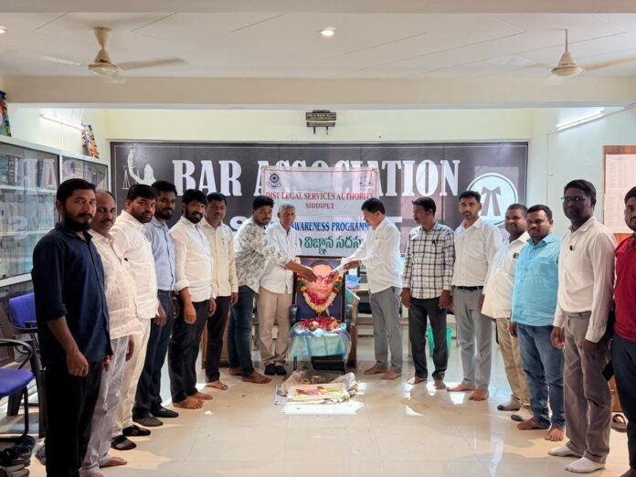 తెలంగాణ రాష్ట్ర న్యాయ సేవాధికార సంస్థ, హైదరాబాద్. కె. సాయి రమాదేవి, ప్రిన్సిపాల్ డిస్టిక్ అండ్ సెషన్స్ జడ్జ్ చైర్ పర్సన్ డిస్టిక్ లీగల్ సర్వీసెస్ అథారిటీ సిద్దిపేట ఆదేశాల మేరకు సిద్దిపేట జిల్లా న్యాయ సేవాధికార సంస్థ  ఆధ్వర్యంలో అంబేద్కర్ జయంతి సందర్భంగా సిద్దిపేట జిల్లా బార్ అసోసియేషన్లో లీగల్ అవేర్నెస్ ప్రోగ్రాం నిర్వహించడం జరిగింది. ఈ కార్యక్రమంలో లీగల్ ఎయిడ్ డిఫెన్స్ కౌన్సిల్ అడ్వకేట్స్ మరియు అడ్వకేట్ బార్ ఆసోసియేషన్ సిద్దిపేట్ పాల్గొన్నారు..