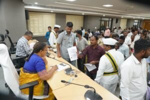 ప్రజావాణి దరఖాస్తులను ఎప్పటికప్పుడు పరిశీలించి పరిష్కరించాలని జిల్లా కలెక్టర్ కె హేమావతి అధికారులను ఆదర్శించారు. సోమవారం కలెక్టరేట్ సమావేశ మందిరంలో జిల్లాలోని వివిధ ప్రాంతాల నుండి వచ్చిన ప్రజల ద్వారా వివిధ సమస్యలపై ఆర్జీలను స్వీకరించారు. వాటిని జిల్లా కలెక్టర్ స్వయంగా పరిశీలించి ఆయా శాఖల జిల్లా అధికారులకు వాటి పరిష్కారం కోసం అందజేసి వారం రోజులలోగా సమస్యలుగా పరిష్కరించి నివేదికలను అందించాలని అధికారులను ఆదేశించారు. ఈరోజు ప్రజావాణి కార్యక్రమంలో జిల్లా కలెక్టర్ కు. 216 దరఖాస్తులను వివిధ సమస్యల పరిష్కారం కోసం ప్రజలు అందజేశారు.ప్రజావాణి కార్యక్రమానికి ముందు జిల్లా జిల్లా అధికారులతో జిల్లా కలెక్టర్ మాట్లాడుతూ రాష్ట్ర ప్రభుత్వం ప్రతిష్టాత్మకంగా నిర్వహిస్తున్న ప్రజా పాలన ప్రగతి ప్రణాళిక కార్యక్రమం ద్వారా ఆయా శాఖలకు నిర్వహించిన వారాలలో చేయవలసిన కార్యక్రమాలను నిర్వహించాలని ఆదేశించారు. అంతకుముందు 5 నెలల క్రితం చనిపోయిన కోహెడ మండలం చెంచల్ చెరువు పల్లి ఐకెపి కమ్యూనిటీ కోఆర్డినేటర్ జె. శ్రీనివాస్ కుటుంబ సభ్యులకు శ్రీనిధి ద్వారా 1 లక్ష 50 వేల రూపాయల ఆర్థిక సహాయం చెక్కును జిల్లా కలెక్టర్ అందించారు. ఈ కార్యక్రమంలో జిల్లా అదనపు కలెక్టర్ లోకల్ బాడీస్ అబ్దుల్ హమీద్, డిఆర్ఓ నాగరాజమ్మ, డిఆర్డిఓ జయదేవ్ ఆర్య, కలెక్టరేట్ ఏవో రాజ్ కుమార్, వివిధ శాఖల జిల్లా అధికారులు తదితరులు పాల్గొన్నారు..