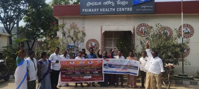 కడప జిల్లా ప్రజావాణి న్యూస్ (ఏప్రిల్25) తొట్టిగారిపల్లె మలేరియా అంతం మనతోనే సాధ్యమని తొట్టిగారి పల్లె వైద్యాధికారి రాజేష్ కుమార్ అన్నారు.బద్వేల్ మండలంలోని, తొట్టిగారి పల్లెలో,శనివారం ఉదయం ప్రపంచ మలేరియా దినోత్సవ కార్యక్రమం జరిగింది.ఈ సందర్భంగా వైద్య సిబ్బంది మలేరియా అంతం మనతోనే సాధ్యమని,బ్యానర్ చేతపట్టి, పలు వీధులలో ర్యాలీ నిర్వహించారు.లార్వాదశలోనే దోమలను అరికట్టాలని,దోమల నివారణకు దోమతెరలే శ్రేయస్కరమని,పరిసరాలను శుభ్రంగా పెట్టుకోవాలంటూ,నినాదాలు చేశారు.ఈ సందర్భంగా వైద్యాధికారి మాట్లాడుతూ దోమ ద్వారానే చికెన్ గున్యా, మలేరియా,డెంగ్యూ, మెదడువాపు వ్యాధి,బోధకాలు పలు రకాల వ్యాధులు వస్తాయన్నారు మలేరియా సబ్ యూనిట్ అధికారి బ్రహ్మాజీ మాట్లాడుతూ,సిబ్బందిచే తాము ఇంటింటి లార్వా,ఫీవర్ సర్వే నిర్వహిస్తున్నామన్నారు.లార్వా ఉన్నచోట నీటిని పడవేస్తున్నామన్నారు.డ్రైనేజీ కాలువలో,నిల్వ ఉన్న నీరు,తడి ప్రదేశాలలో అబేట్,ఆయిల్ బాల్స్,బ్లీచింగ్ పౌడర్ ను చల్లిస్తున్నామన్నారు.అవసరమైన చోట మెడికల్ క్యాంపులను నిర్వహిస్తున్నామన్నారు.104,విలేజ్ హెల్త్ క్లినిక్ లలో ప్రజల వద్దకే వైద్యం అందుతుందన్నారు.ప్రభుత్వ ఆసుపత్రులలో మందులు సమృద్ధిగా ఉన్నాయన్నారు.ఈ అవకాశాన్ని ప్రతి ఒక్కరూ ఉపయోగించుకోవాలన్నారు.ఈ కార్యక్రమంలో సిహెచ్ఓ చంద్రావతి,హెల్త్ అసిస్టెంట్లు వీరి జనార్దన్ రావు, శ్రీరామయ్య,వెంకటసుబ్బయ్య,వైద్య సిబ్బంది మహేంద్ర సుబ్బరాయుడు,ఈశ్వరమ్మ, ఏఎన్ఎం ,ఆశాలు పాల్గొన్నారు
