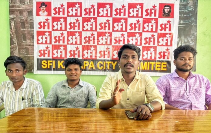 కడప ప్రజావాణి న్యూస్ మార్చి25 ముందస్తు అడ్మిషన్ల పేరుతో విద్యార్థుల తల్లిదండ్రులను మోసం చేస్తున్న విద్యాసంస్థల పై చర్యలు తీసుకోవాలిఎ స్ఎఫ్ఐజిల్లా అధ్యక్ష,కార్యదర్శులు జాల సుమంత్,వీరపోగు రవి.కడ జిల్లాలోని ప్రైవేట్ మరియు కార్పొరేట్ విద్యాసంస్థల ముందస్తు అడ్మిషన్లు చేస్తున్న యాజమాన్యంపై చర్యలు తీసుకోవాలని బుధవారం కడప నగరంలోని వారి కార్యాలయం లో విలేకరుల సమావేశంలో ఎస్ఎఫ్ఐ జిల్లా అధ్యక్ష, కార్యదర్శులు జాల సుమంత్,వీరపోగు రవి అన్నారు.అనంతరం వారు మాట్లాడుతూ.రాష్ట్రవ్యాప్తంగా 10వ తరగతి విద్యార్థులకు పరీక్షలు ముగిసకముందే కడప జిల్లాలో అక్రమ ముందస్తు అడ్మిషన్లు చేయడం దుర్మార్గమని వారన్నారు.విద్యా సంవత్సరం పూర్తికాకముందే విచ్చలవిడిగా అడ్మిషన్లు చేస్తుంటే జిల్లా విద్యాశాఖ అధికారులు చూస్తూ వారిపై చర్యలు తీసుకోకపోవడం పై పలు అనుమానాలు వ్యక్తం చేశారు. ముఖ్యంగా కార్పొరేట్ విద్యా సంస్థలు శ్రీ చైతన్య, నారాయణ, బాష్యం,NRI,విద్యాసంస్థలు అడ్మిషన్లు టార్గెట్ పేరుతో విచ్చలవిడిగా చేస్తున్న యాజమాన్యం పై అధికారులు చర్యలు తీసుకోవట్లేదు అర్థం కావట్లేదని వారు అన్నారు.చదువు పేరుతో ఇలా అక్రమంగా ఫీజులు వసూలు చేసే విద్యాసంస్థలపై జిల్లా కలెక్టర్ గారు మరియు జిల్లా విద్యాశాఖ అధికారులు స్పందించి వారిపై చర్యలు తీసుకోవాలని వారు డిమాండ్ చేశారు లేని పక్షంలో జిల్లా వ్యాప్తంగా ఆందోళనలు చేపడతామని వారు హెచ్చరించారు.ఈ సమావేశం లో ఎస్ఎఫ్ఐ జిల్లా ఉపాధ్యక్షులు ఎద్దు రాహుల్, నగర ఉపాధ్యక్షులు శ్రీనివాసులు పాల్గొన్నారు.