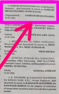 ఈ సందర్భంగా సర్పంచ్ సాంబారి భారతమ్మ కొమురయ్య మాట్లాడుతూ, తన వ్యక్తిగత మరియు అధికారిక అవసరాల దృష్ట్యా ఈ పేరు మార్పు చేపట్టినట్లు తెలిపారు. ఇకపై అన్ని ప్రభుత్వ మరియు ప్రైవేట్ రికార్డులు మరియు ఇతర అధికారిక పత్రాలలో పాత పేరు స్థానంలో కొత్తగా మారిన ‘సాంబారి భారతమ్మ కొమురయ్య’ పేరునే నమోదు చేయాలని సంబంధిత శాఖల అధికారులకు విజ్ఞప్తి చేశారు.