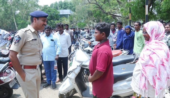 ఉల్లంఘనల వివరాలు:మైనర్ డ్రైవింగ్ – 164 (సీజ్: 80, జరిమానా: 84) ట్రిపుల్ రైడింగ్ – 36 (సీజ్: 18, జరిమానా: 36)లైసెన్స్ లేని వాహనాలు – 358 (సీజ్: 48,జరిమానా: 310) నంబర్ ప్లేట్ లేని వాహనాలు – 96 (సీజ్: 47, జరిమానా: 49) డ్రంక్ అండ్ డ్రైవ్ – 1 (సీజ్: 1)అనధికార పార్కింగ్ – 169 (సీజ్: 12, జరిమానా: 157) రోడ్లపై వాహనాలు నడిపే ప్రతి ఒక్కరికీ ప్రాథమిక బాధ్యతలు ఉన్నాయి: తమ భద్రత పట్ల బాధ్యతగా వ్యవహరించడం ఇతరుల భద్రత పట్ల బాధ్యతగా వ్యవహరించడం. రోడ్లపై ప్రయాణించే సమయంలో మోటార్ వాహనాల చట్టాలు మరియు ట్రాఫిక్ నిబంధనలు పాటించడం ప్రతి వాహనదారుడి కర్తవ్యము.రోడ్డు ప్రమాదాలను తగ్గించడం మరియు ప్రజల ప్రాణాలను రక్షించడం కోసం ప్రభుత్వాలు దీర్ఘకాల పరిశీలన తర్వాత ఈ నిబంధనలు అమలు చేస్తున్నాయి. మనం జాగ్రత్తగా వాహనం నడిపినప్పటికీ, ఇతరుల నిర్లక్ష్యం వలన ప్రమాదాలు సంభవించే అవకాశం ఉంది. అందువల్ల ప్రతి ఒక్కరూ బాధ్యతాయుతంగా వ్యవహరించడం అత్యంత అవసరం. డ్రైవింగ్ లైసెన్స్: వాహనం నడపడానికి చట్టబద్ధమైన అర్హతను నిర్ధారించే పత్రం డ్రైవింగ్ లైసెన్స్.సరైన శిక్షణ లేకుండా వాహనం నడపడం వల్ల మీ ప్రాణాలతో పాటు ఇతరుల ప్రాణాలు కూడా ప్రమాదంలో పడతాయి. అందువల్ల ప్రతి వాహనదారుడు తప్పనిసరిగా చెల్లుబాటు అయ్యే లైసెన్స్ కలిగి ఉండాలి. లైసెన్స్ ఉన్నప్పుడు మాత్రమే ఇన్సూరెన్స్ సదుపాయం కూడా లభిస్తుంది.మైనర్ డ్రైవింగ్:మైనర్లకు వాహనాలు ఇవ్వడం చట్ట విరుద్ధం మాత్రమే కాకుండా ప్రమాదకరం కూడా తల్లిదండ్రులు ప్రేమతో వాహనాలు ఇచ్చినా, అది పిల్లల ప్రాణాలకు ముప్పుగా మారుతుంది.మైనర్లలో నిర్ణయ సామర్థ్యం పూర్తిగా అభివృద్ధి చెందకపోవడం వల్ల ప్రమాదాలు జరిగే అవకాశాలు అధికంగా ఉంటాయి. కాబట్టి తల్లిదండ్రులు ఈ విషయంలో అప్రమత్తంగా ఉండాలి.హెల్మెట్ వినియోగం