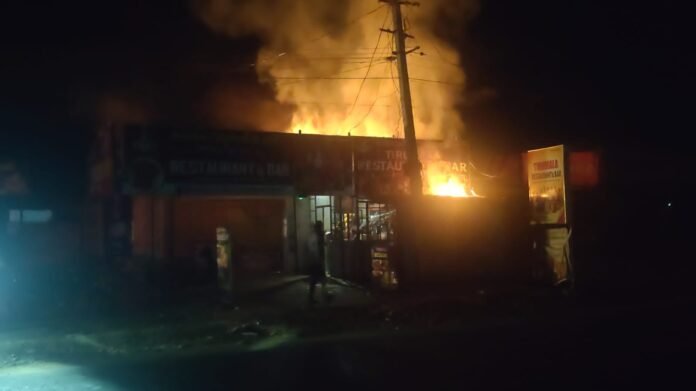 ప్రజావాణిన్యూస్(మార్చి24)కడప జిల్లా రాజంపేట బైపాస్లోని తిరుమల బార్ లో ఒక్కసారిగా భారీ అగ్ని ప్రమాదం సంభవించింది.బార్ ముందు ఉన్న ఫ్లెక్సీలు,రేకులు మంటల్లో కాలిపోయాయి.క్షణాల్లోనే మంటలు భారీగా చెలరేగి స్థానికులను భయాందోళనకు గురి చేశాయి.ప్రాథమిక సమాచారం ప్రకారం:రేకులపై ఏర్పాటు చేసిన బార్ విద్యుత్ బోర్డులో షార్ట్ సర్క్యూట్ తగలడంతోనే ఈ ప్రమాదం జరిగినట్లు అనుమానం.సకాలంలో స్పందించిన ఫైర్ సిబ్బంది, పోలీసులు వెంటనే సంఘటన స్థలానికి చేరుకుని మంటలను అదుపులోకి తీసుకువచ్చారు.వారి వేగవంతమైన చర్యలతో పెను ప్రమాదం తృటిలో తప్పింది. హెచ్చరిక:భవనాల్లో సరైన విద్యుత్ భద్రతా చర్యలు తీసుకోకపోతే ఇలాంటి ప్రమాదాలు ఎప్పుడైనా సంభవించే అవకాశం ఉంది.ప్రజలు అప్రమత్తంగా ఉండాలి యాజమాన్యాలు భద్రతా ప్రమాణాలు పాటించాలి.