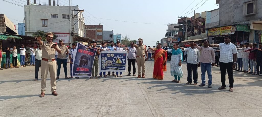 మండల కేంద్రంలోని ప్రధాన రహదారి జంక్షన్లో బుధవారం రోడ్డు భద్రతపై అవగాహన కార్యక్రమం నిర్వహించారు. సిద్ధార్థ హైస్కూల్ విద్యార్థుల భాగస్వామ్యంతో నెక్కొండ సిఐ శ్రీనివాస్ చెన్నారావుపేట ఎస్ఐ రాజేష్ రెడ్డి ఆధ్వర్యంలో అరైవ్ అలైవ్ – నో హెల్మెట్, నో ఎంట్రీ అనే నినాదంతో ఈ కార్యక్రమం చేపట్టారు.ఈ సందర్భంగా సిఐ శ్రీనివాస్ మాట్లాడుతూ…మారుతున్న కాలానికి అనుగుణంగా రోడ్డు ప్రమాదాల సంఖ్య పెరుగుతోందని, వాహనదారులు విధిగా ట్రాఫిక్ నిబంధనలు పాటించాలని సూచించారు. ద్విచక్ర వాహనదారులు తప్పనిసరిగా హెల్మెట్ ధరించాలని, ఇది ప్రాణ రక్షణ కవచంలా పనిచేస్తుందని పేర్కొన్నారు. ఎస్ఐ రాజేష్ రెడ్డి మాట్లాడుతూ విద్యార్థులు తమ తల్లిదండ్రులకు, చుట్టుపక్కల వారికి ట్రాఫిక్ నియమాలపై అవగాహన కల్పించాలని కోరారు.అనంతరం మండల విద్యాశాఖ అధికారి, మండల రెవెన్యూ ఇన్స్పెక్టర్, విద్యార్థులు, ఉపాధ్యాయులు, గ్రామస్తులు పోలీసు సిబ్బందితో కలిసి రోడ్డు భద్రతపై ప్రతిజ్ఞ చేయించారు. ట్రాఫిక్ నిబంధనలు ఉల్లంఘించబోమని, ఇతరులను కూడా చైతన్యపరుస్తామని అందరూ కలిసి శపథం చేశారు. ఈ కార్యక్రమంలో మండల విద్యాశాఖ అధికారి పాపమ్మ, మండల రెవెన్యూ ఇన్స్పెక్టర్ రషీద్,సిద్ధార్థ పాఠశాల వ్యవస్థాపకుడు కంది గోపాల్ రెడ్డి, ఉపాధ్యాయులు, విద్యార్థులు,పోలీస్ సిబ్బంది గ్రామస్తులు, తదితరులు పాల్గొన్నారు.