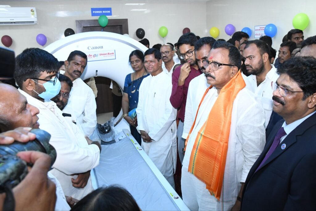 యూనియన్ బ్యాంక్ ఆఫ్ ఇండియా రూ. 2.55 కోట్ల సిఎస్ఆర్ నిధులతో జీ జీ హెచ్ లో ఏర్పాటు చేసిన సిటీ స్కాన్ సెంటర్ ద్వారా ప్రజలకు మెరుగైన వైద్య సేవలు అందించాలని వారు  జిల్లా వైద్యాధికారులకు సూచించారు బుధవారం వనపర్తి జిల్లా కేంద్రంలోని ప్రభుత్వ జనరల్ హాస్పిటల్ నందు యూనియన్ బ్యాంక్ ఆఫ్ ఇండియా సిఎస్ఆర్ నిధులు రూ. 2.55 కోట్లతో ఏర్పాటు చేసిన సిటీ స్కాన్ సెంటర్ ను ఎంపీ మల్లురవి, వనపర్తి శాసనసభ్యులు తూడి మేఘారెడ్డి రాష్ట్ర ప్రణాళికా సంఘం ఉపాధ్యక్షులు డాక్టర్ జిల్లెల్ల చిన్నారెడ్డి, జిల్లా కలెక్టర్ ఆదర్శ్ సురభి తో కలిసి రిబ్బన్ కట్ చేసి ప్రారంభించారు